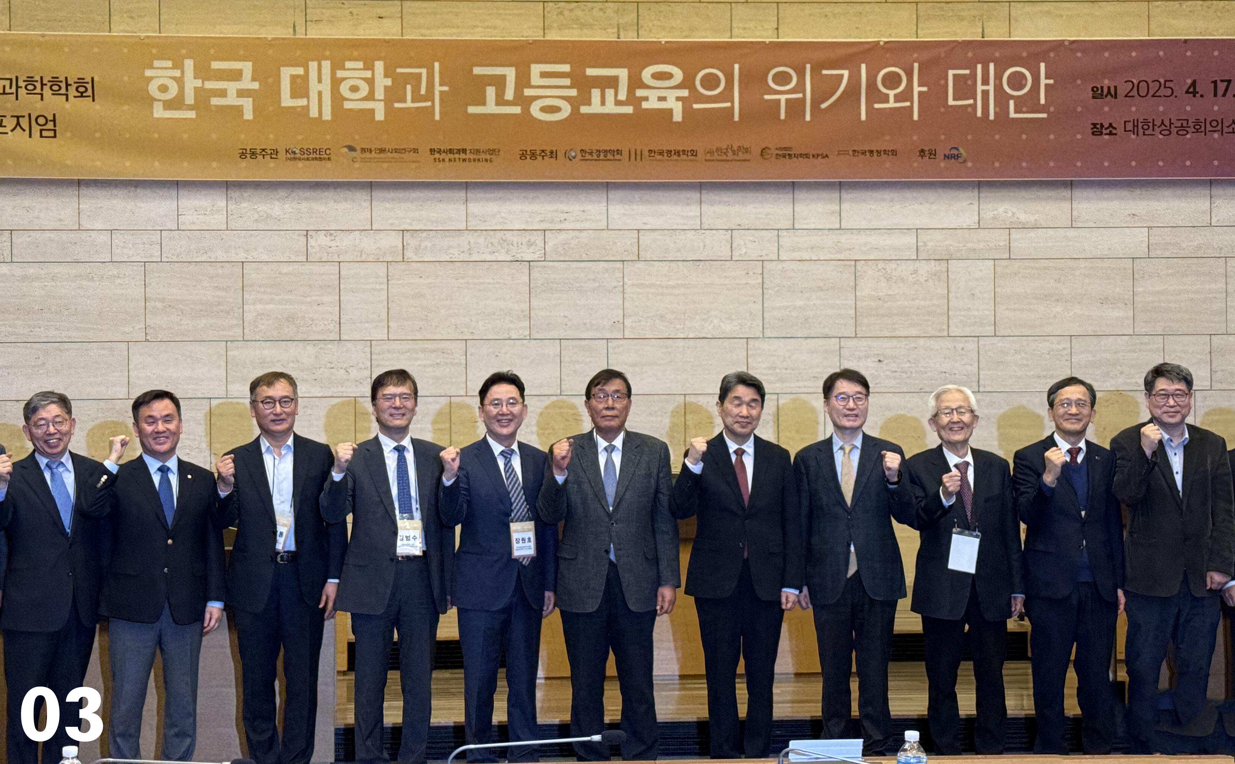 경제·인문사회연구회와 한국사회과학협의회는 4월 17일(목) 대한상공회의소 의원회의실에서 ‘한국 대학과 고등교육의 위기와 대안’을 주제로 심포지엄을 개최하였다. 이번 행사는 학령인구 감소, 대학 재정위기, 고등교육 국제화 등 최근 한국 대학이 직면한 복합적 위기를 진단하고, 정책적 대안을 모색하기 위해 마련되었다. 신동천 경제·인문사회연구회 이사장은 “대학의 위기는 지식생산과 지역사회, 나아가 국가경쟁력 전반에 영향을 미치는 중대한 사회적 과제이며, 국가의 지속가능성과 미래를 좌우할 엄중한 사안”이라고 강조하였고, 장원호 한국사회과학협의회 회장은 “이번 심포지엄은 대학 구조의 위기를 극복하기 위한 사회과학계의 지혜를 모으는 자리로, 학제 간 융합 연구의 토대를 마련하는 중요한 계기가 될 것”이라며 “정부와 학계, 시민사회가 함께 논의하는 장으로서의 의미가 크다"라고 밝혔다.