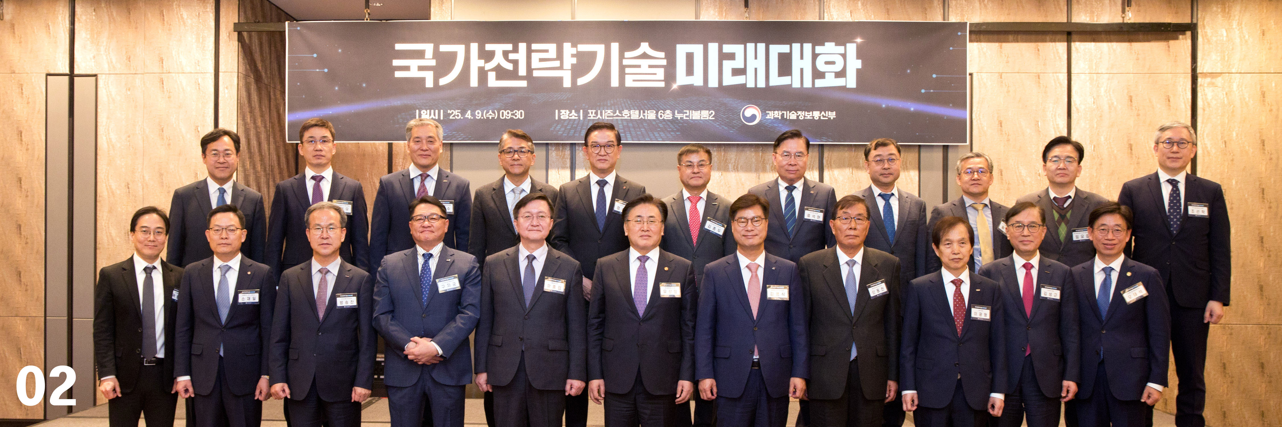 경제·인문사회연구회는 2025년 4월 9일(수) 서울 포시즌스호텔에서 과학기술정보통신부 장관이 주최하는 「국가전략기술 미래대화」에 참석하였다. 정부는 「국가전략기술 육성에 관한 특별법」을 근거로 신산업, 미래 공급망 및 국가안보 차원에서 전략적 가치가 높은 국가전략기술에 연구개발 투자·지원을 집중해 왔고, 올해는 6.4조 원을 집중 투자할 계획이다. 국가전략기술 미래대화는 대내외 환경의 급격한 변화 속에서 산·학·연의 역량을 총결집하고자 시작되었다. 신동천 경제·인문사회연구회 이사장은 “미래 성장동력, 인재 양성, 기술사업화는 저희 연구회와 소관 연구기관들도 경제·인문사회 분야 측면에서 연구해 온 주요 주제”라면서 “미래성장동력의 산업화와 산업생태계 조성, 시장화와 규제혁신 등 다운스트림 부문, 인적자원의 효과적 확보, 통상환경조성 등은 정책연구로 산학연 협조가 가능하다”라고 하였다. 이번 미래대화에서 참석자들은 과학기술 주권 확보를 위한 차세대 성장동력 및 국가 의제 발굴, 국가전략기술이 실제 성과를 창출할 수 있는 인재 양성, 제도개선 등을 국가전략기술 대표 산·학·연이 정부와 공동으로 추진하는 방안을 집중적으로 논의하였다.